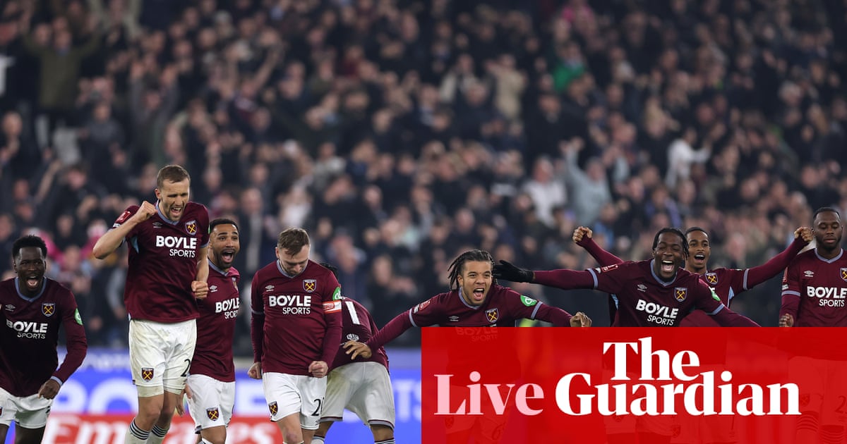 Updated at 19.04 EDT2d ago18.26 EDTWest Ham United 2-2 Brentford, West Ham win 5-3 on penaltiesFive brilliant pens from West Ham, one hilarious one from Ouattara, and it’s the Irons who go through to face Leeds at home in the last eight.